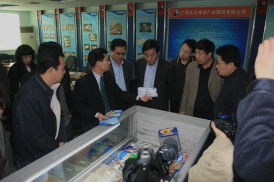 針對(duì)全市進(jìn)出口指標(biāo)一季度下滑,北海市委常委、統(tǒng)戰(zhàn)部部長(zhǎng)毛艷瓊于2015年5月8日在高新區(qū)進(jìn)行專題調(diào)研時(shí),專程來(lái)到正五海產(chǎn)公司考察。高新區(qū)黨工委書記劉永康、正五集團(tuán)董事長(zhǎng)黃禮雄、正五海產(chǎn)公司副總經(jīng)理崔小祥等陪同。