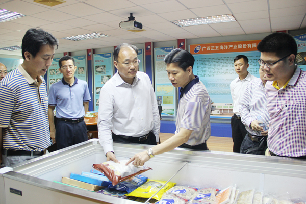 為了解水產(chǎn)品加工,2016年7月18日上午,欽州市政協(xié)副主席李磊巖一行到正五海產(chǎn)公司,對(duì)水產(chǎn)品加工情況開(kāi)展考察調(diào)研,積極探索北海、欽州兩地特色水產(chǎn)品產(chǎn)業(yè)化共同發(fā)展之路。