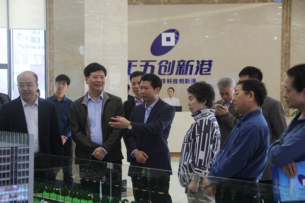 2019年4月12日上午,北海市市長(zhǎng)蔡錦軍率隊(duì)赴正五創(chuàng)新港考察市科技局高端服務(wù)業(yè)集聚區(qū)并召開(kāi)工作現(xiàn)場(chǎng)會(huì)。北海市副市長(zhǎng)卓英子、市科技局黨組書記、局長(zhǎng)李斌施及各有關(guān)單位領(lǐng)導(dǎo)陪同考察。