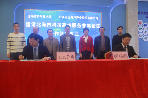 3月26日下午,北海市科學技術局與廣西正五海洋產業(yè)股份有限公司在正五北部灣海洋科技創(chuàng)新港一樓大廳簽訂《北海市科技高端服務業(yè)聚集區(qū)戰(zhàn)略合作協(xié)議》。參加簽約儀式的有市科技局領導班子成員,各科室負責人及北海市科技信息研究所干部職工、正五集團董事長黃禮雄、集團副總裁榮培彥及正五公司各部門負責人等共計30余人。