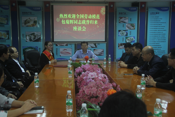 11月27日上午,正五集團公司熱烈歡迎“全國勞動模范”包菊輝同志載譽歸來。集團公司董事長黃禮雄帶領(lǐng)集團總經(jīng)辦成員及各公司負責(zé)人、部門經(jīng)理在正五海產(chǎn)公司廣場熱烈歡迎。