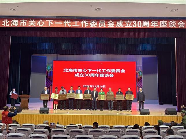 11月16日上午,北海市關(guān)工委成立30周年座談會在市老干部活動中心召開。自治區(qū)關(guān)工委主任張少康、市委常委、組織部部長、市關(guān)工委主任呂勇江出席會議并講話。廣西正五海洋產(chǎn)業(yè)股份有限公司受到北海市關(guān)工委表彰,榮獲北海市關(guān)心下一代委員會愛心企業(yè)。