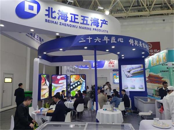 步入正五海產(chǎn)展區(qū),品牌標(biāo)志性的海洋主色調(diào)構(gòu)筑起整體空間,懸掛的燈箱熠熠生輝,正五海產(chǎn)公司通過融入休閑的火鍋食材理念,將青蝦滑、黑虎蝦滑和魚籽北極蚌滑等火鍋食材讓參觀者直觀感受從生態(tài)養(yǎng)殖到餐桌美食的完整價值鏈。