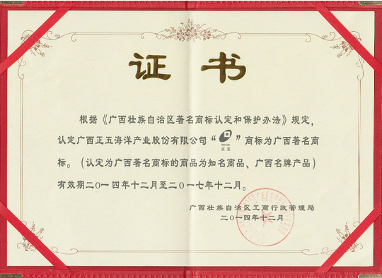 經(jīng)廣西著名商標(biāo)評(píng)審委員會(huì)評(píng)審確認(rèn),廣西壯族自治區(qū)工商局同意,正五海產(chǎn)公司注冊(cè)商標(biāo)“ZHENCWU正五”被認(rèn)定為廣西著名商標(biāo),并于日前獲得了自治區(qū)工商局頒發(fā)的廣西著名商標(biāo)證書。
